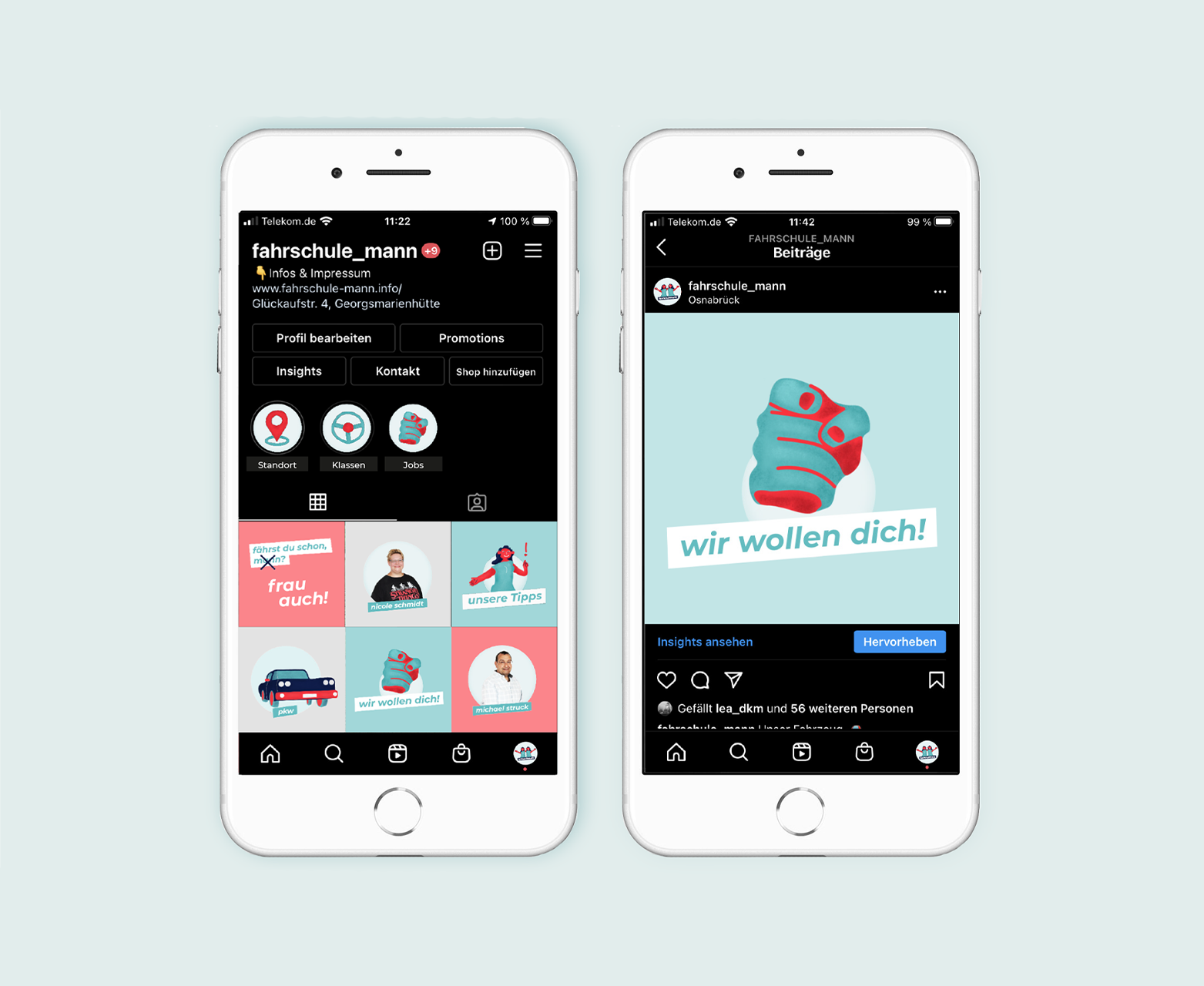Mann ist eine Fahrschule, ansässig in Georgsmarienhütte mit Niederlassungen in Holzhausen und Harderberg. Die Inhaber Michael Struck und Igor Losing übernahmen die Fahrschule vom Vorbesitzer „Herrn Mann“. Mit dem Markenrelaunch sollen potenzielle FahrschülerInnen wie FahrlehrerInnen angeworben werden. Mit einem schnellen Informationszugang soll ein einfaches System für FahrschülerInnen wie FahrlehrerInnen erstellt werden mit hoher Usability und einer Website mit eigenem Account.
